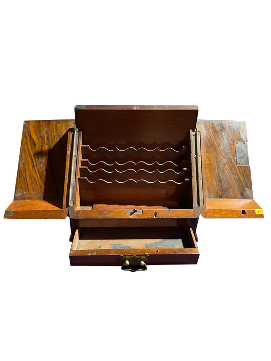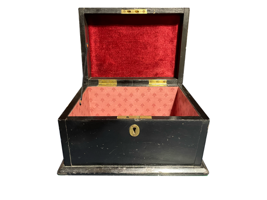 Antique Dark Wood Box with Green Velvet and Black Silk Interior