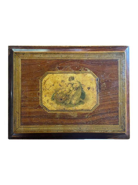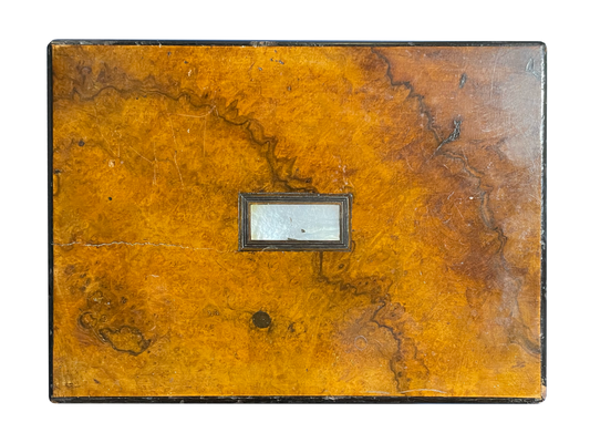 Large Antique Walnut Box with Mother of Pearl Rectangular Inlay