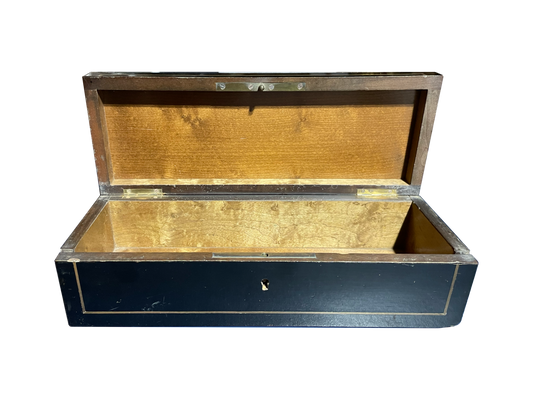 Medium Black Wooden Box with Mother of Pearl and Brass Details